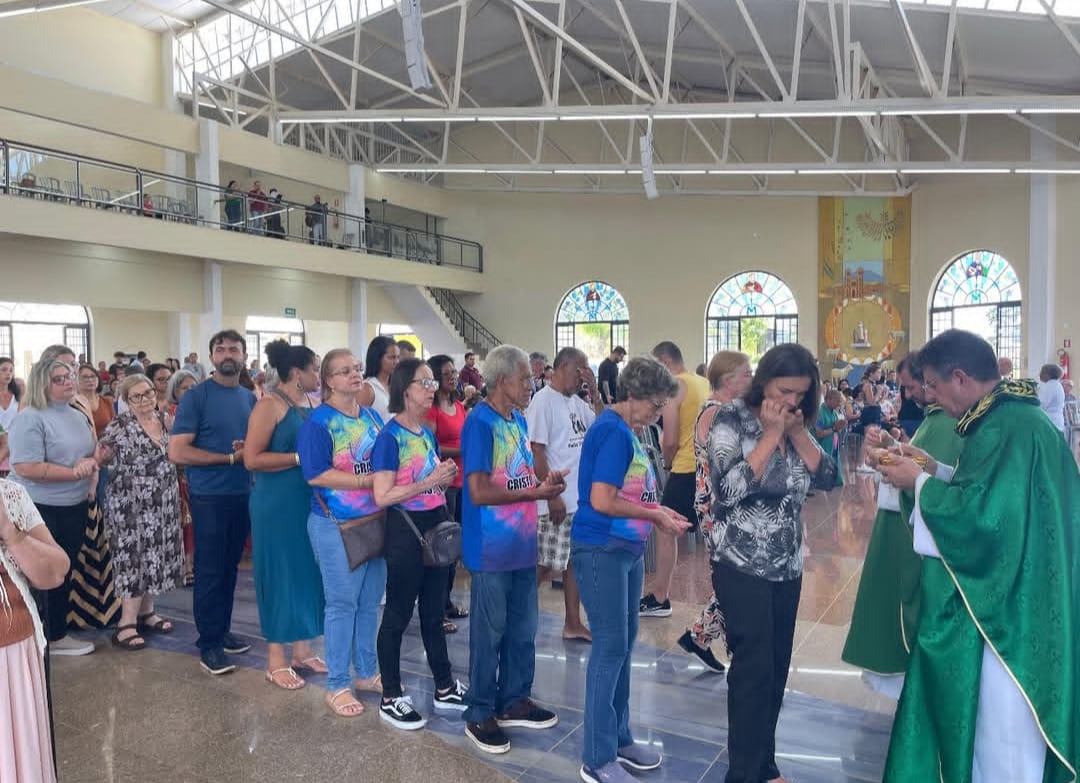 Tivemos um momento de confraternização entre irmãos, onde partilhamos um café da manhã. Logo em seguida, participamos da Santa Missa às 10 horas, a qual foi presidida pelo padre Orcalino Lopes da Silva, assessor eclesiástico do Movimento de Cursilhos na diocese de Ipameri, e concelebrada pelo padre Pedro Pilonetto, que é o reitor do Santuário de Nossa Senhora da Salete e também o padre Wellington Supriano, da diocese de Bauru, onde os participantes da Romaria ficaram responsáveis pela liturgia.