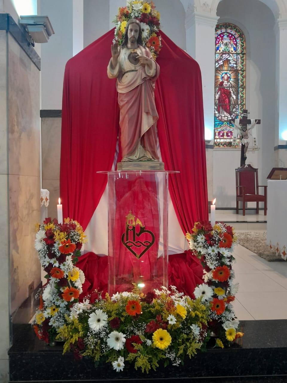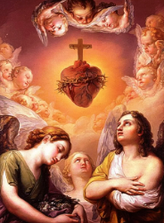 A devoção ao Sagrado Coração de Jesus com São João Evangelista ao pé da cruz, quando um soldado romano com uma lança atravessou o lado de Jesus. “E de seu coração aberto jorrou sangue e água”. Dessa maneira Jesus revelou seu amor e sua doação por nós. O Coração de Jesus conhece a fundo a cada um de nós e se revela como um coração bondoso e misericordioso. Jesus nos diz “vinde a mim vós todos que estais aflitos e cansados que vos aliviarei”.