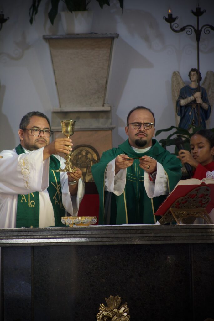Encerramos esse dia inesquecível com a Caminhada da Esperança, saindo do salão paroquial em direção à Igreja Matriz, onde celebramos a Santa Missa presidida pelo padre Laudemir e concelebrada pelo padre Hermínio. Essa foi, sem dúvida, a culminância do nosso encontro: a juventude reunida em torno da Eucaristia, o verdadeiro alimento da alma. Ali, diante do altar, entregamos tudo: nossa alegria, nossas dores, nossos sonhos. Saímos renovados, com o coração ardendo de gratidão e o espírito pronto para seguir firmes na missão de sermos luz no mundo.